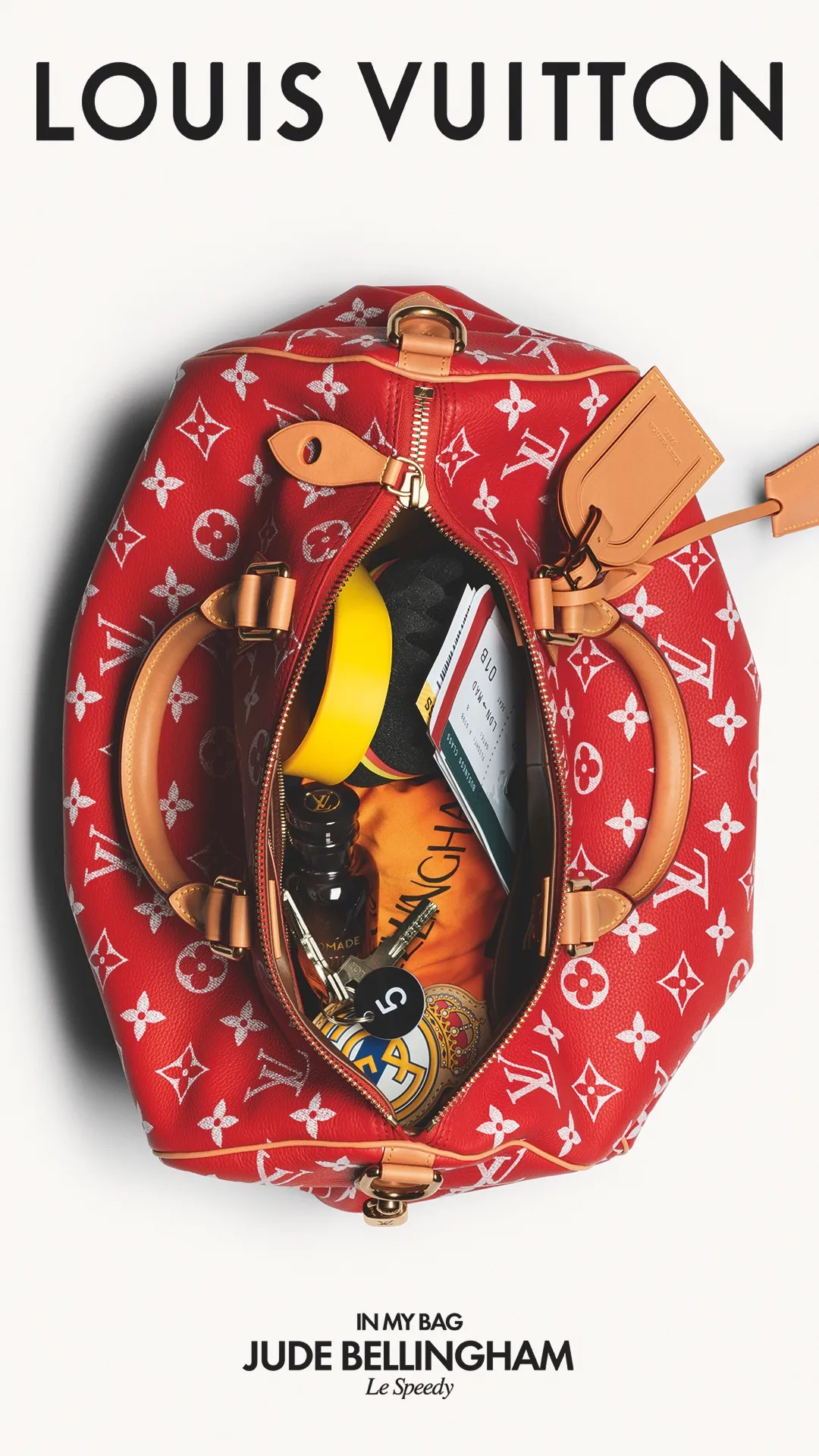 Tra i protagonisti c’è Jude Bellingham, centrocampista del Real Madrid, che nella sua Speedy inserisce oggetti legati alla sua vita da calciatore internazionale: accessori personali, documenti di viaggio e riferimenti alla sua carriera sportiva.