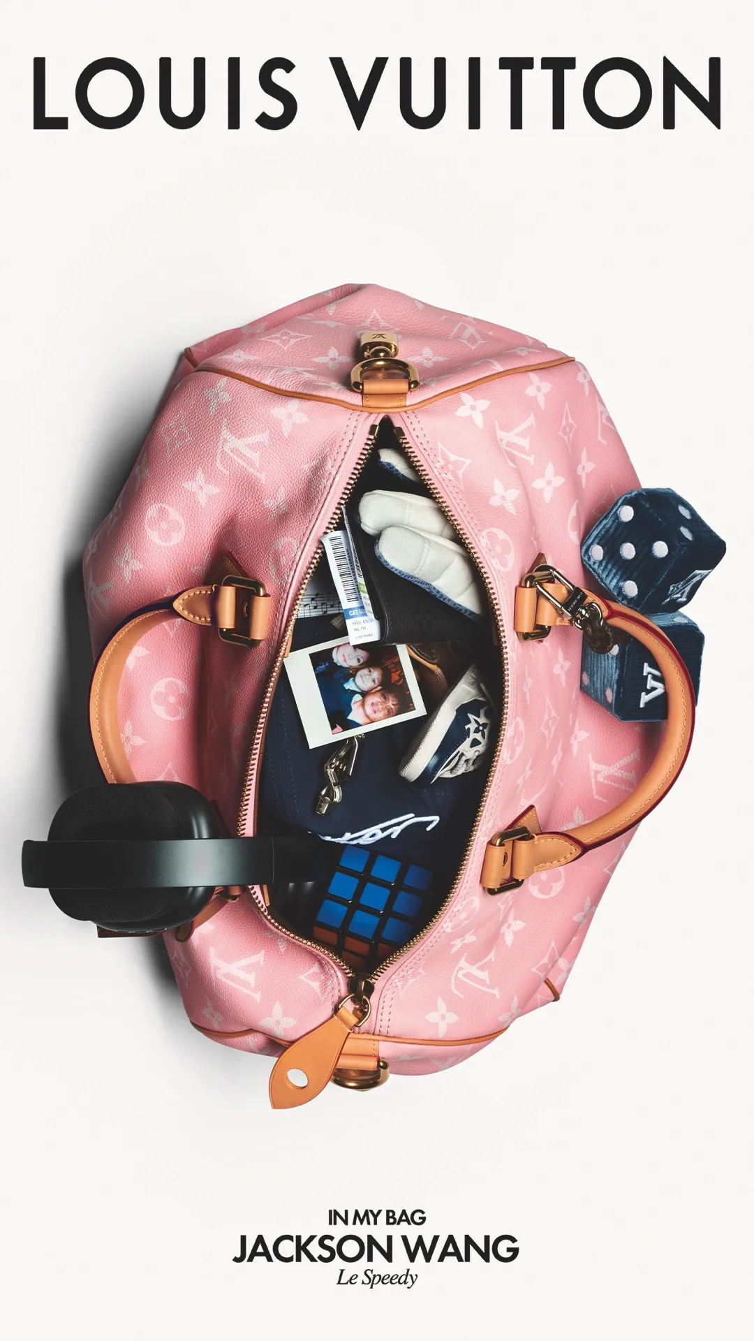 Il cantante e performer Jackson Wang sceglie invece un approccio più intimo, inserendo elementi legati alla sfera personale come fotografie, gadget e piccoli oggetti simbolici, oltre a accessori per l’intrattenimento quotidiano.