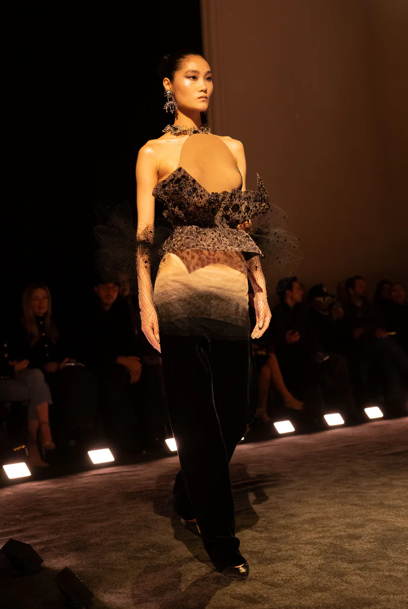 In questo contesto, la couture rivendica il suo ruolo più autentico: non quello di rispondere a un bisogno pratico, ma di offrire uno spazio di libertà assoluta. È un territorio in cui il creatore può sottrarsi alla logica del mercato e tornare a una dimensione più istintiva, quasi adolescenziale, fatta di desiderio, rischio e visione.
